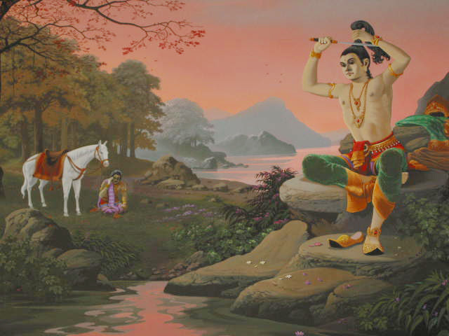 Hoàng tử cởi bỏ y phục của mình và trao chúng cho Channa.